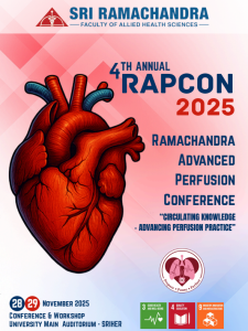 The Department of Cardiothoracic and Vascular Surgery – Division of Perfusion Technology is conducting the 4th Annual Ramachandra Advanced Perfusion Conference and Workshop – RAPCON on 28th and 29th November, 2025 at University Main Auditorium.