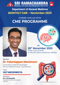 The Department of General Medicine is organizing a CME on “Gut Microbiota” on 28.11.2025 at the Library Auditorium